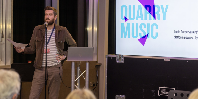 James Warrender presenting. Strategic Partnerships Manager (Employability & Enterprise) at Leeds Conservatoire