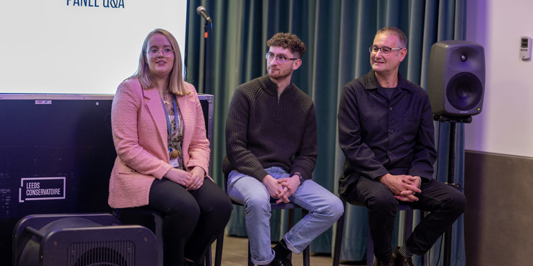 Panellists (pictured left to right) intern Chloe Simmons, composer Sam MacDonald and mentor & music consultant Steve Farris. Photo credit throughout: Ian Hodgson