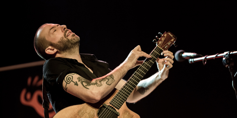 Jon Gomm is an English singer-songwriter and performer, and one of our Jazz degree graduates. His engaging and ambitious songs draw on influences and styles in blues, soul, rock and metal, and he creates drum sounds, bass lines and melodies simultaneously with just his acoustic guitar.