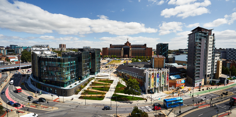 Our Playhouse Square performing arts facilities (left) are right next door to Leeds Playhouse and in the heart of the city's cultural quarter.