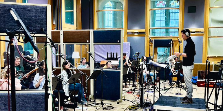 - Recording and conducting my compositions at AIR Studios in London, including guided improvisations for Knife’s Edge