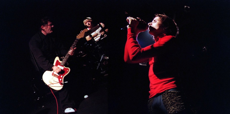 Joe Wilson (left) performing with Sneaker Pimps. Image credit: Kristine Slett